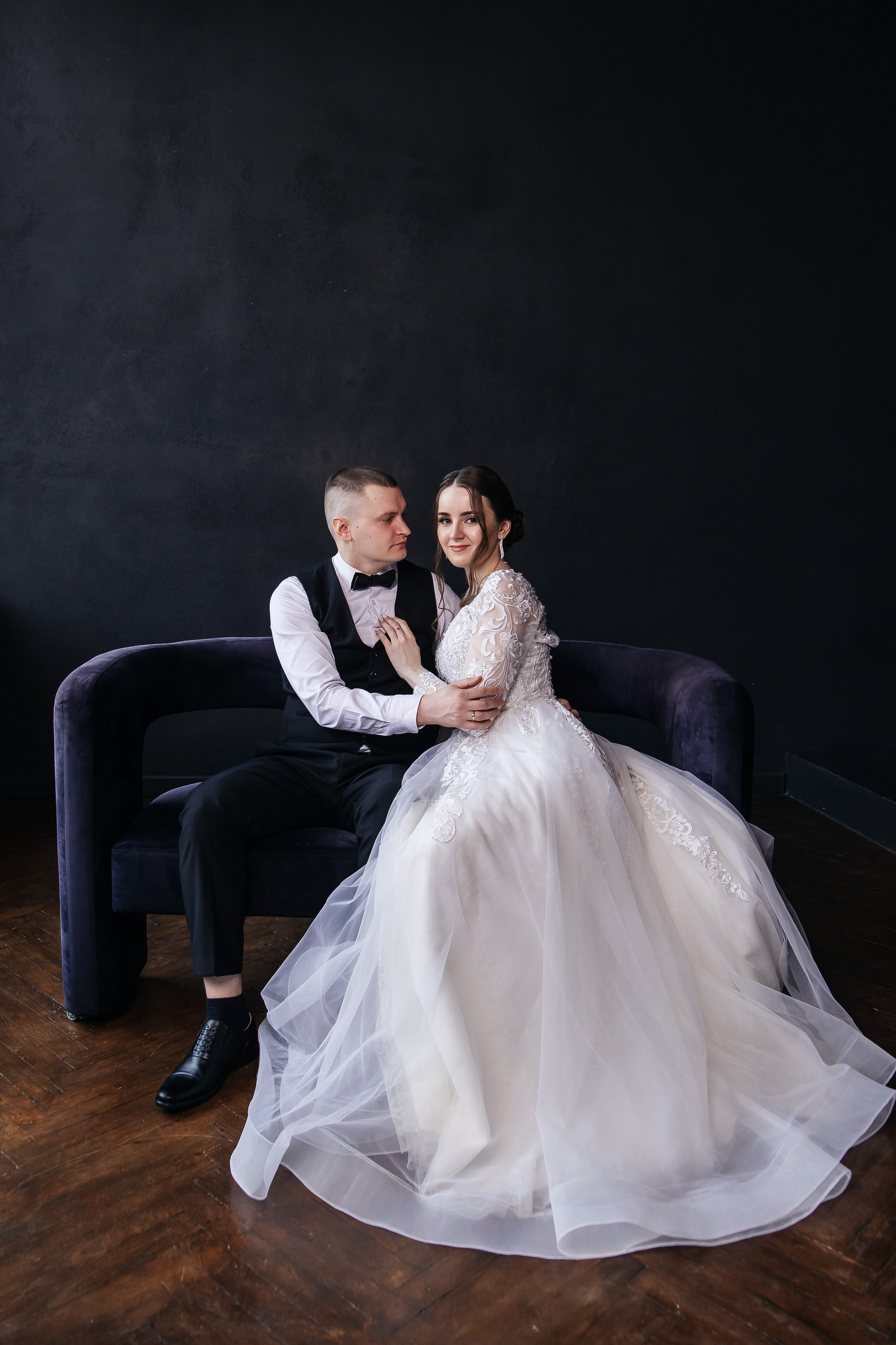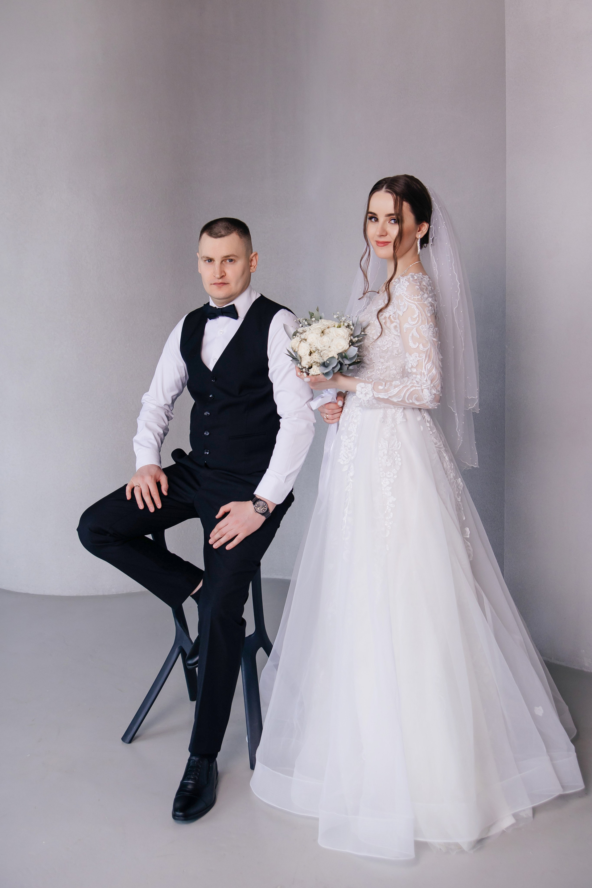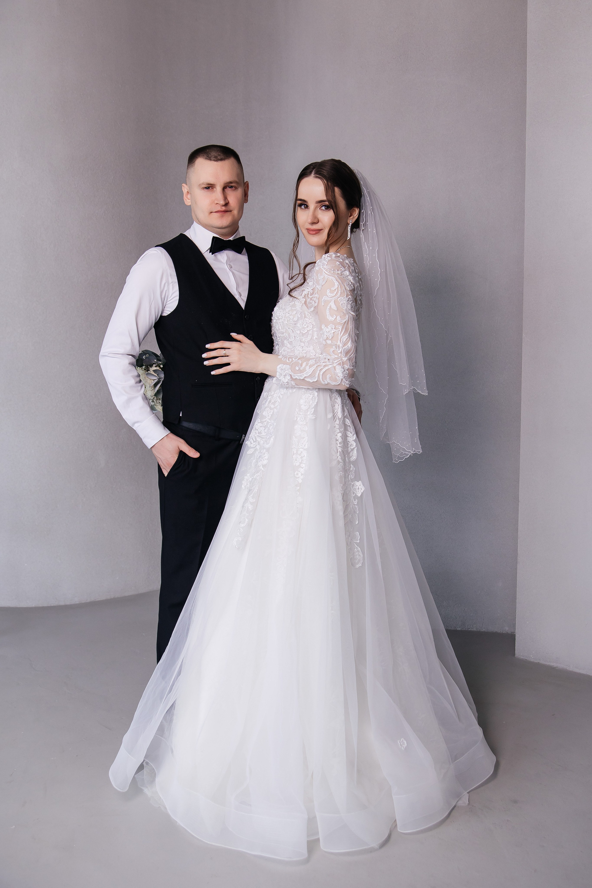Свадебная фотосессия для Дарьи и Романа в студии с семьёй и друзьями