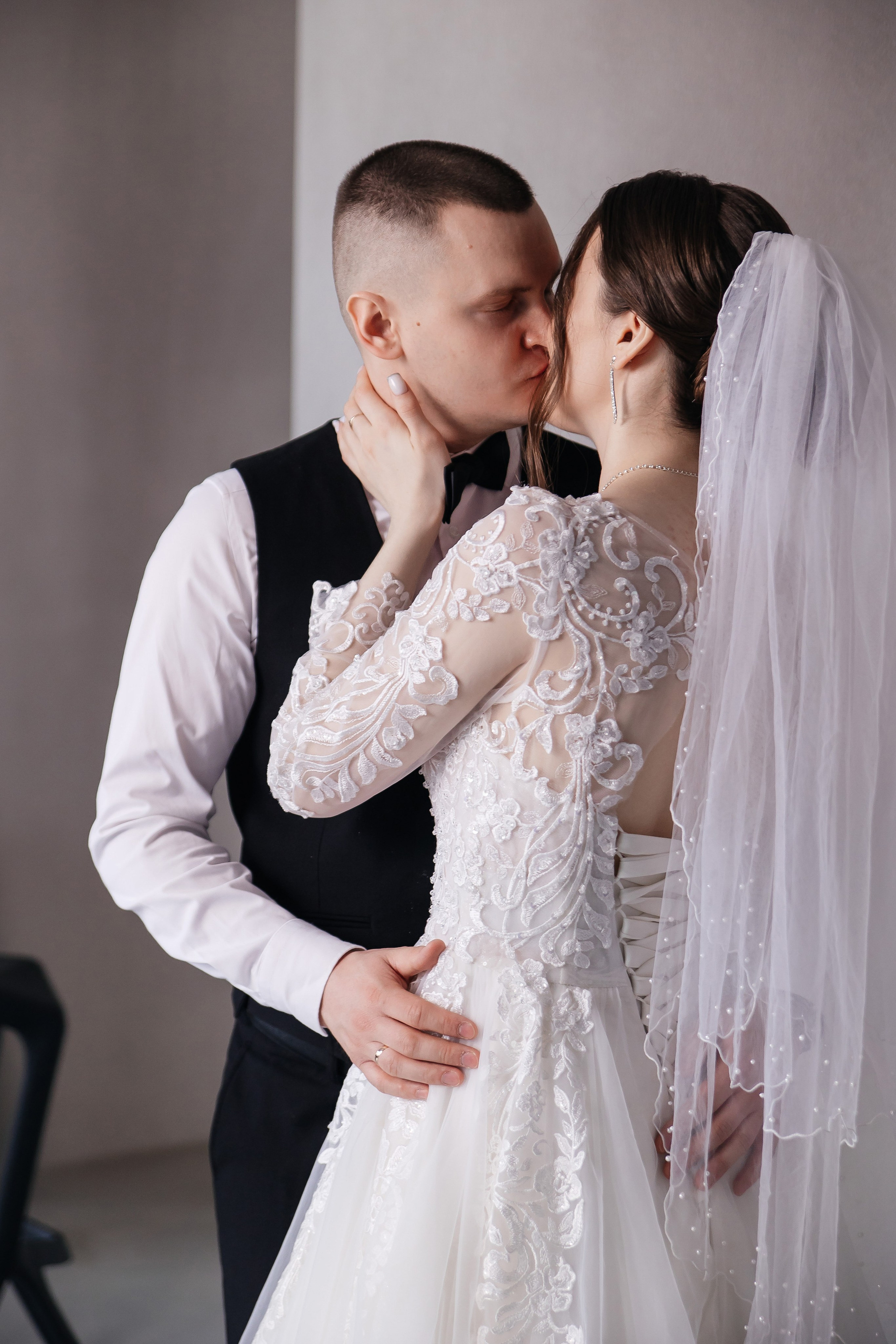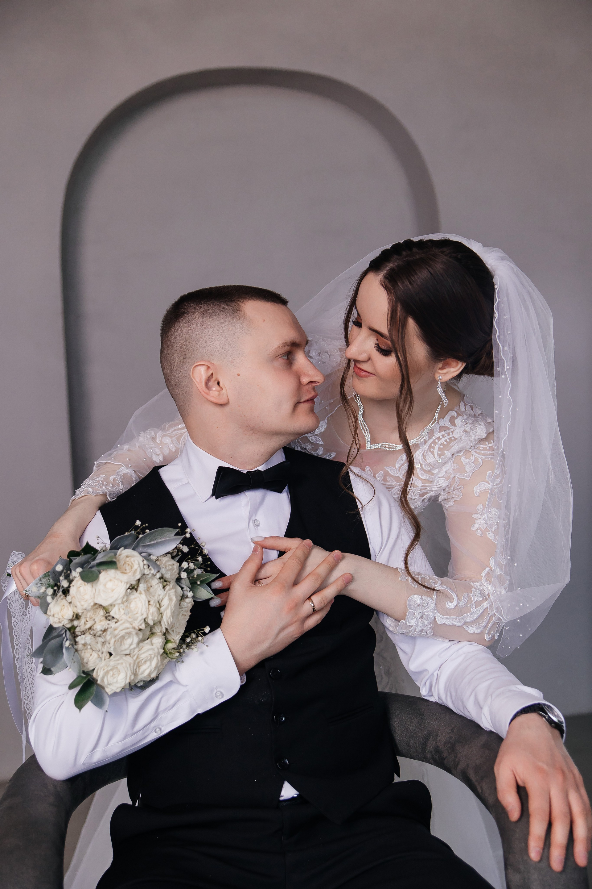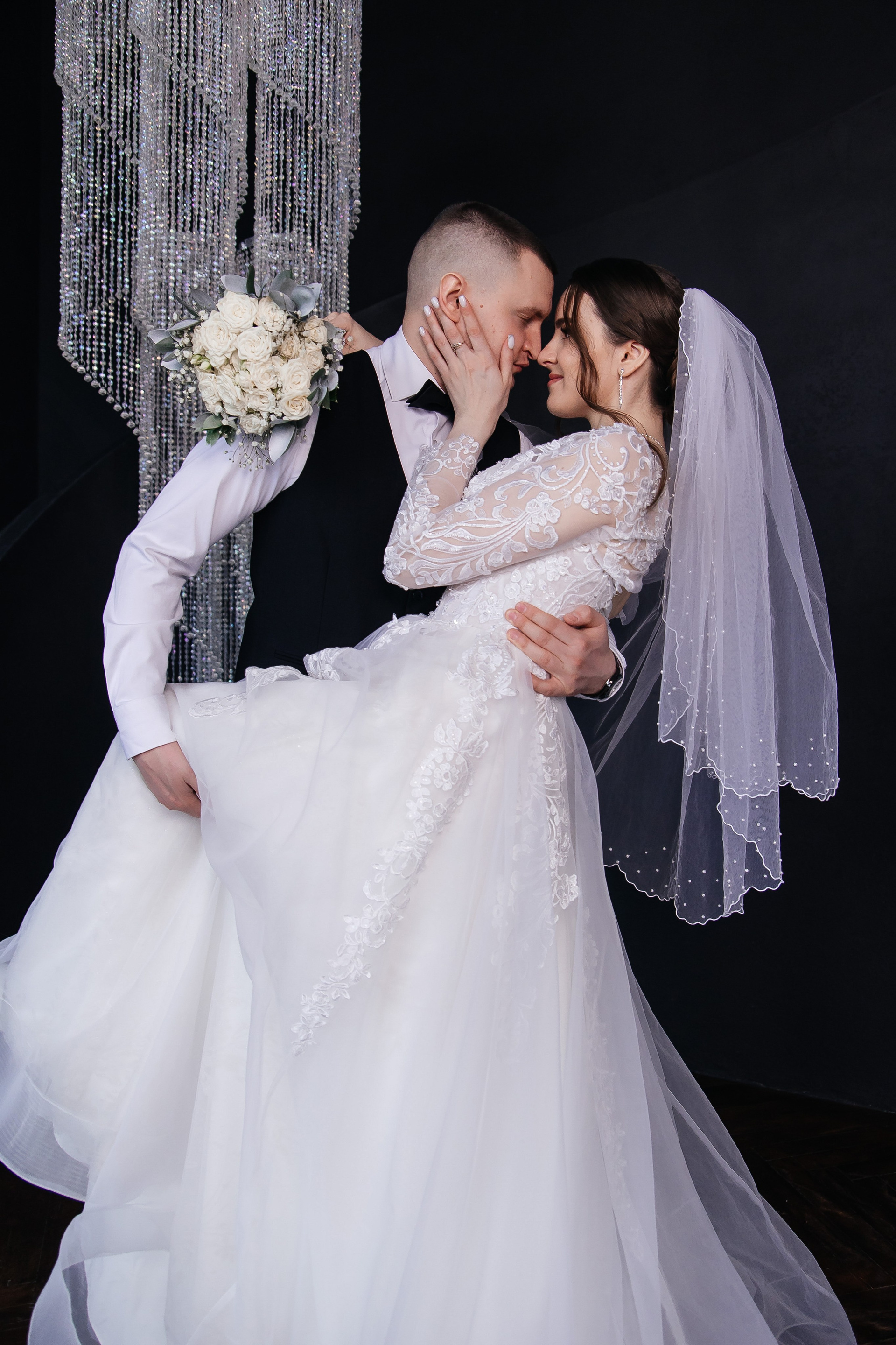 Свадебная фотосессия для Дарьи и Романа в студии с семьёй и друзьями