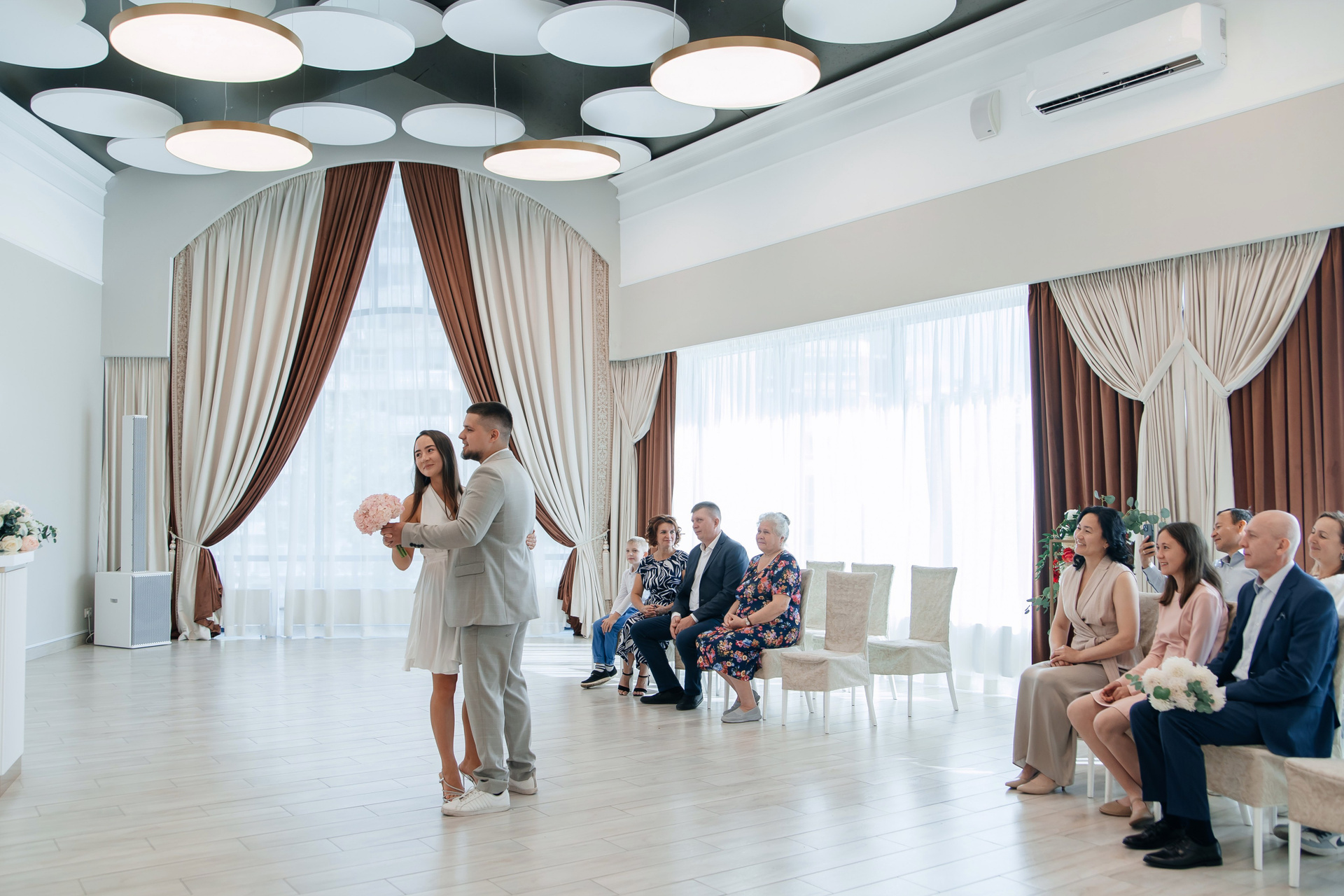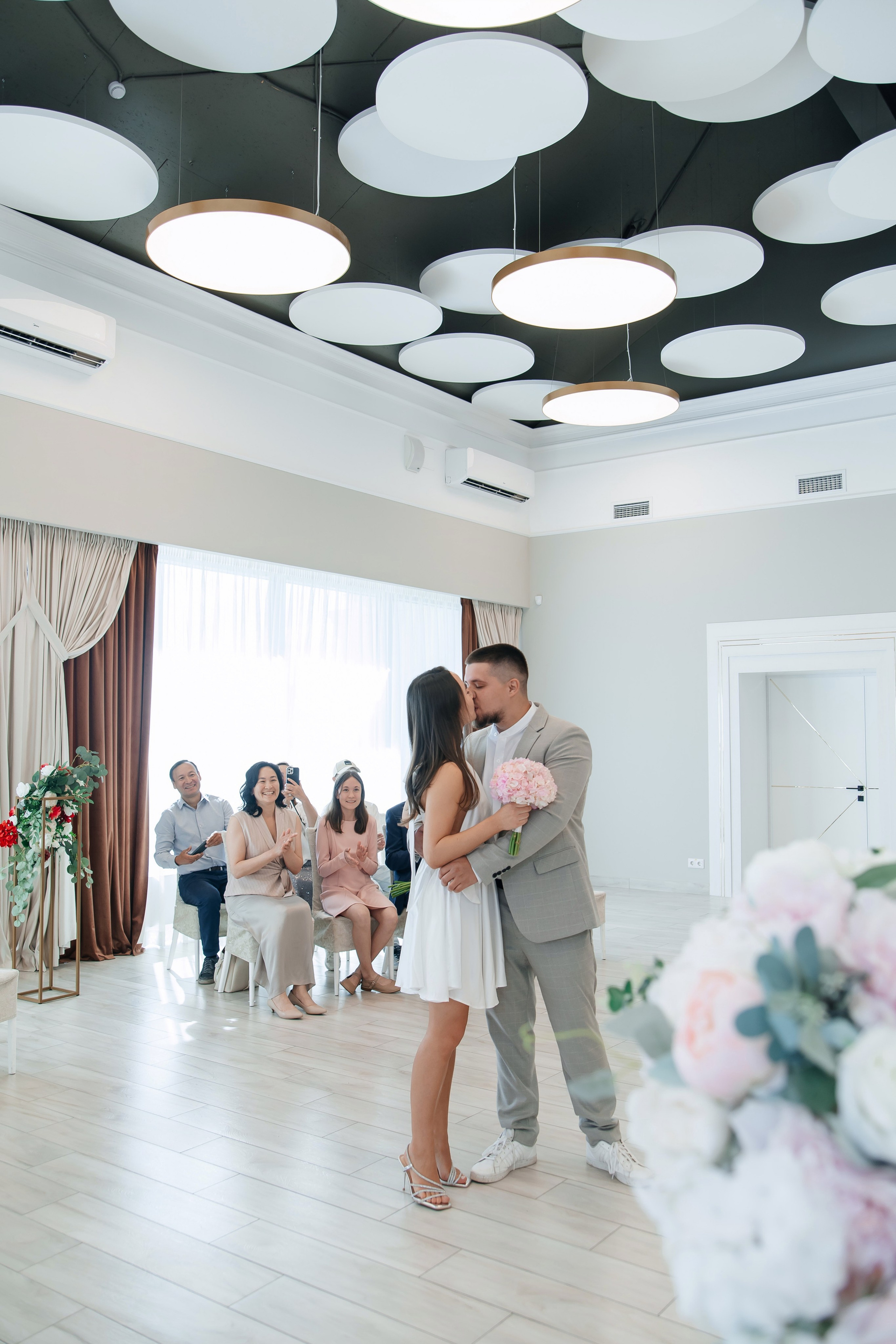 Свадебная фотосессия для Дарьи и Романа в студии с семьёй и друзьями